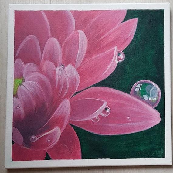 Water Drop Floral Dragonfly Natural Wall Art Acrylic Painting Etsy